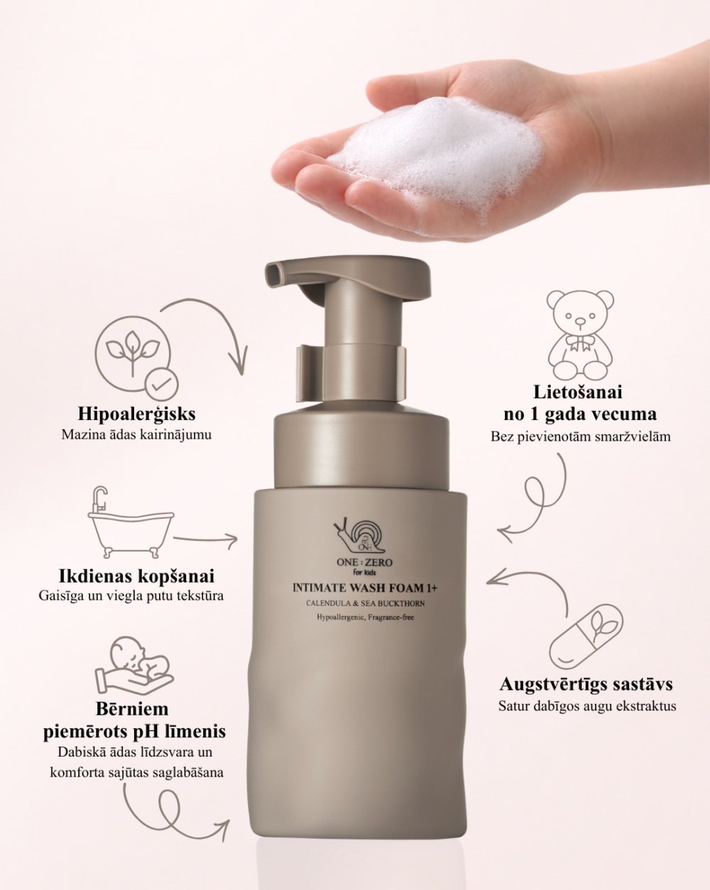 Rūpes par personīgo higiēnu ir svarīga prasme, ko iemācāmies jau no bērnības. ONE:ZERO for Kids intīmās mazgāšanās putas bērniem ir izstrādātas, lai nodrošinātu īpaši maigu un dabisku intīmās zonas kopšanu, saglabājot ādas līdzsvaru un komfortu. Bez pievienotām smaržvielām un mākslīgām sastāvdaļām – tikai dabīgas, nomierinošas un mitrinošas sastāvdaļas, kas ir piemērotas pat visjutīgākajai ādai.